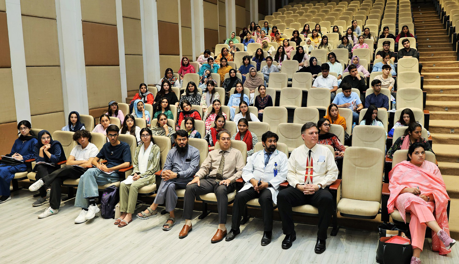 The program draws students from various government and semi-government institutions, including medical colleges in Faisalabad, Multan, Vehari, and Burewala, as well as international universities and private schools from across Lahore. It features a diverse range of topics presented by King Edward Medical University faculty and other experts, including Research Writing, Mental Health Awareness, Burn Awareness, and Basic Life Skills.